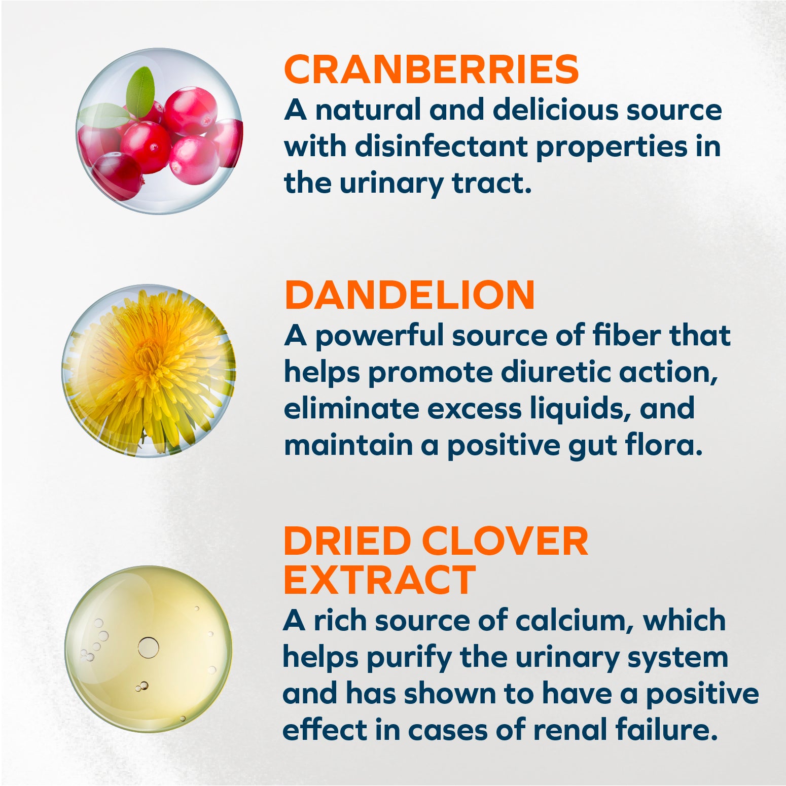 - Cranberries, dried dandelion, and dried clover are added for kidney support
