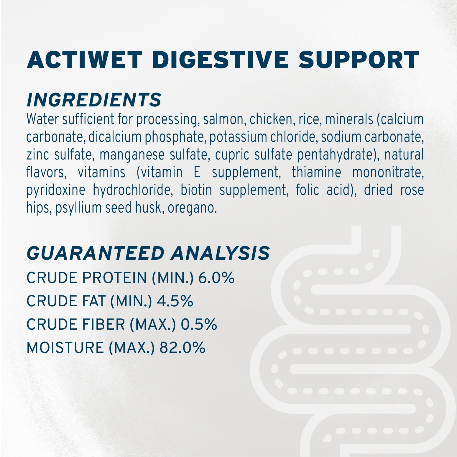 Water sufficient for processing, salmon, chicken, rice, minerals (calcium carbonate, dicalcium phosphate, potassium chloride, sodium carbonate, zinc sulfate, manganese sulfate, cupric sulfate pentahydrate, potassium iodide), guar gum, natural flavors, vitamins (vitamin E supplement, thiamine mononitrate, pyridoxine hydrochloride, biotin supplement, folic acid), dried rose hips, psyllium seed husk, oregano, dried Enterococcus faecium fermentation product.